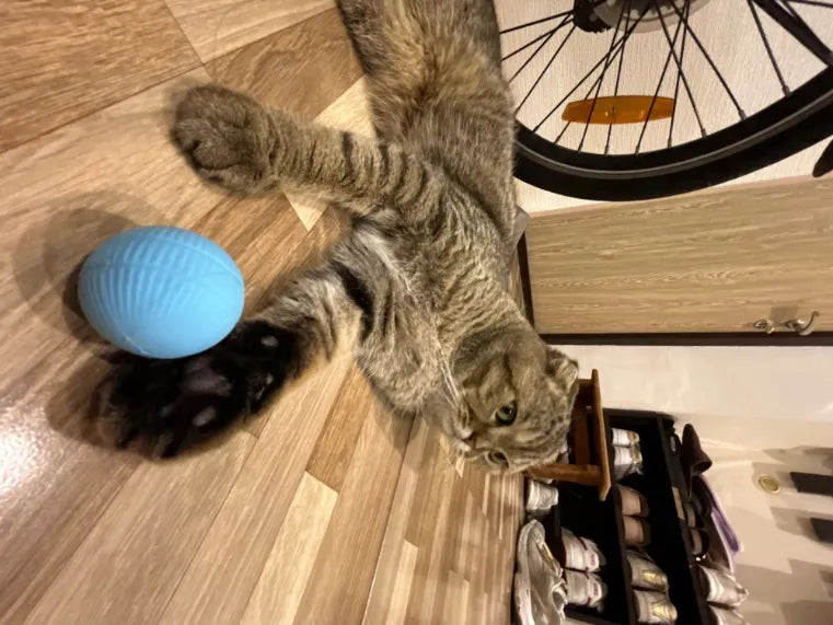 This interactive toy automatically rolls around, encouraging your cat to chase it. It's designed to keep cats entertained and active without needing human intervention.