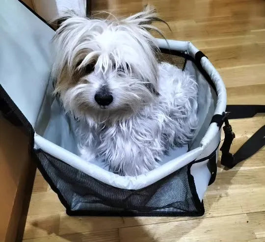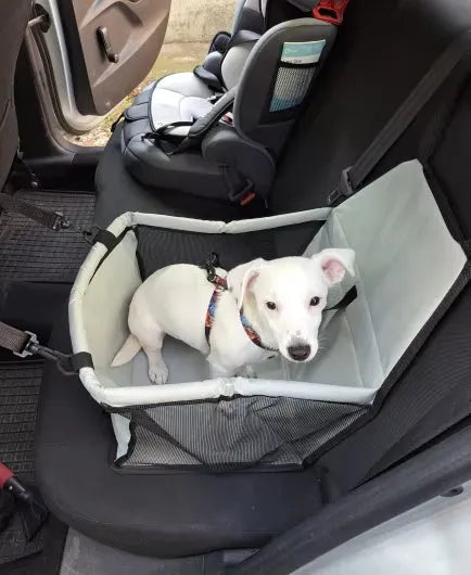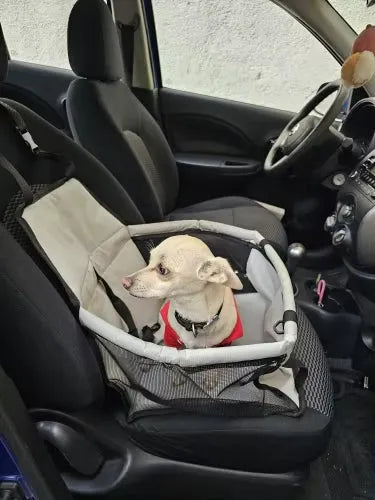 "OMG, luv this pet car seat! My lil pup stays super safe while I'm driving. No more jumping around and I feel so much more focused on the road. Easy to hook up and fold away. Can't imagine road trips without it now๐Ÿ˜Š๐Ÿ‘"